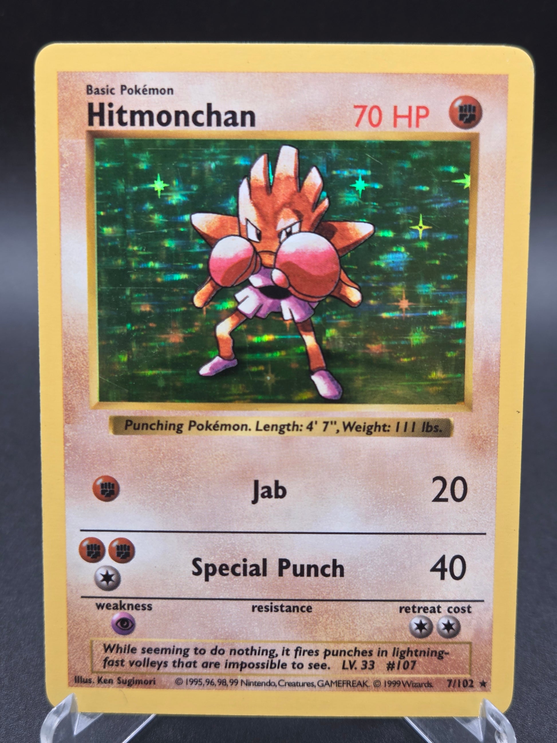 Pokémon TCG: 1999 Hitmonchan - 7/102 - Base Set Shadowless Unlimited Holo