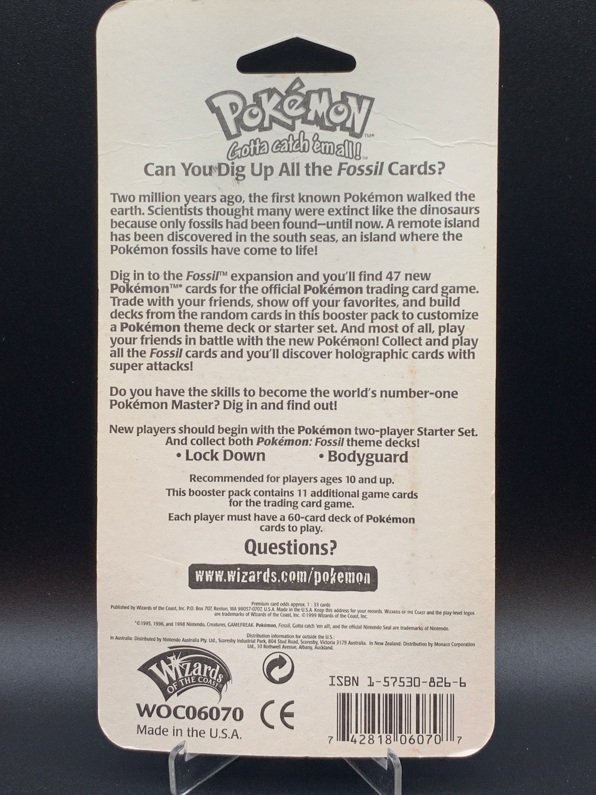 Wizards of the Coast Pokemon Fossil- Sealed On Card Hanger Vintage 1999.